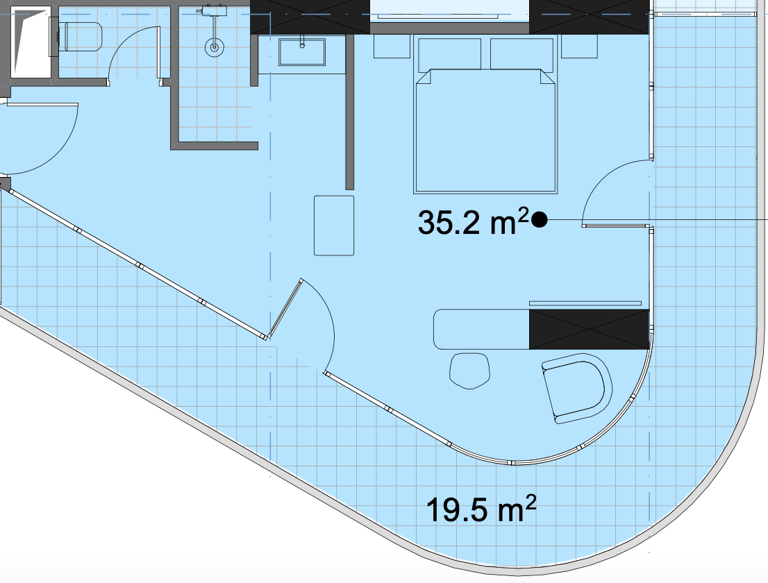 This panoramic apartment feels spacious, elegant, and resort-like, combining a large interior with a distinctive curved terrace. Compared to the smaller panoramic unit, it offers greater comfort, better zoning, and a more luxurious guest experience, ideal for longer stays or guests seeking a flagship Radisson Blu room category.